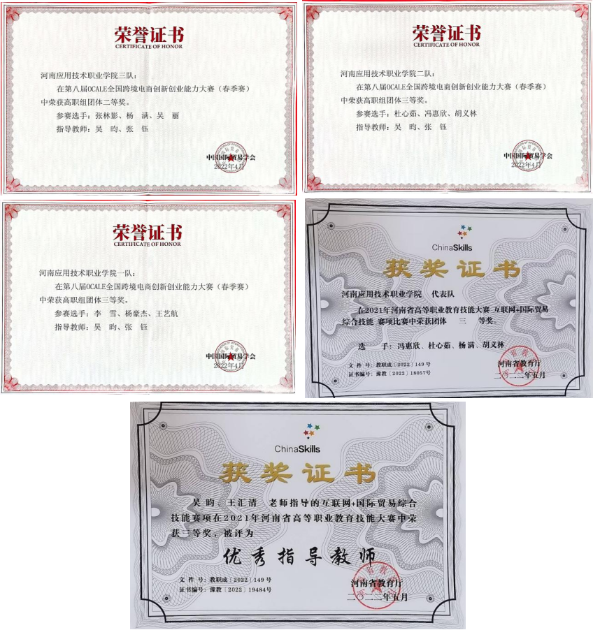 2021年河南省高等职业教育技能大赛互联网+国际贸易综合技能赛项优秀指导教师三等奖